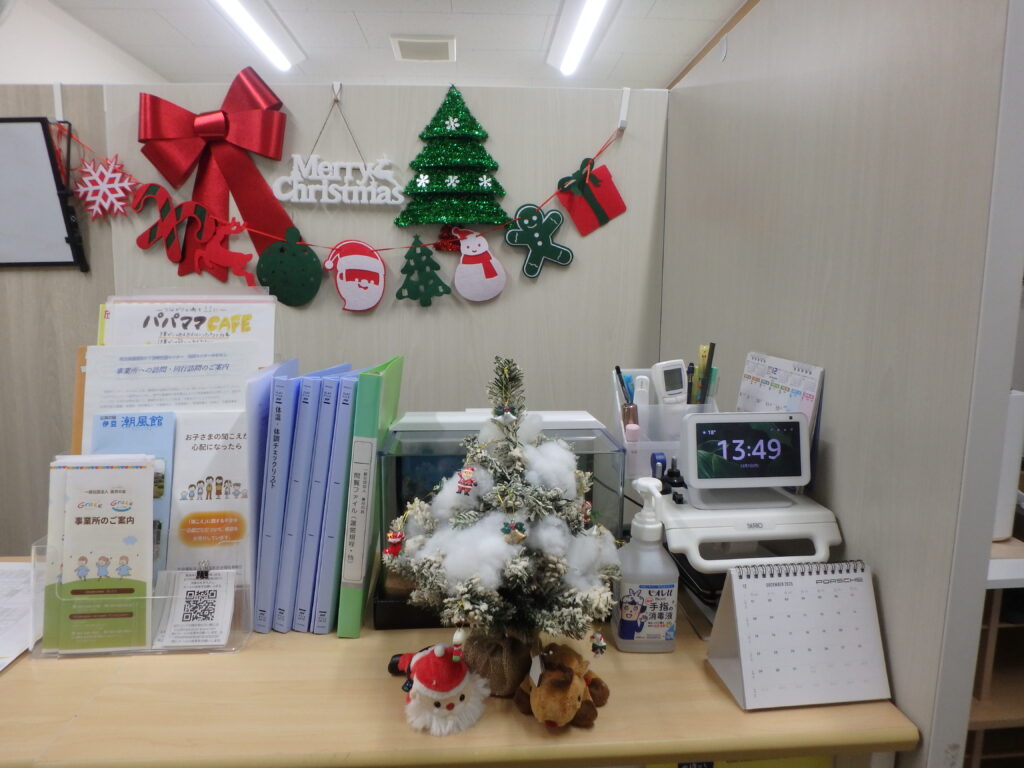 いよいよクリスマス時期にも入りまして、支援室には続々とクリスマスの飾りつけが始まっております。